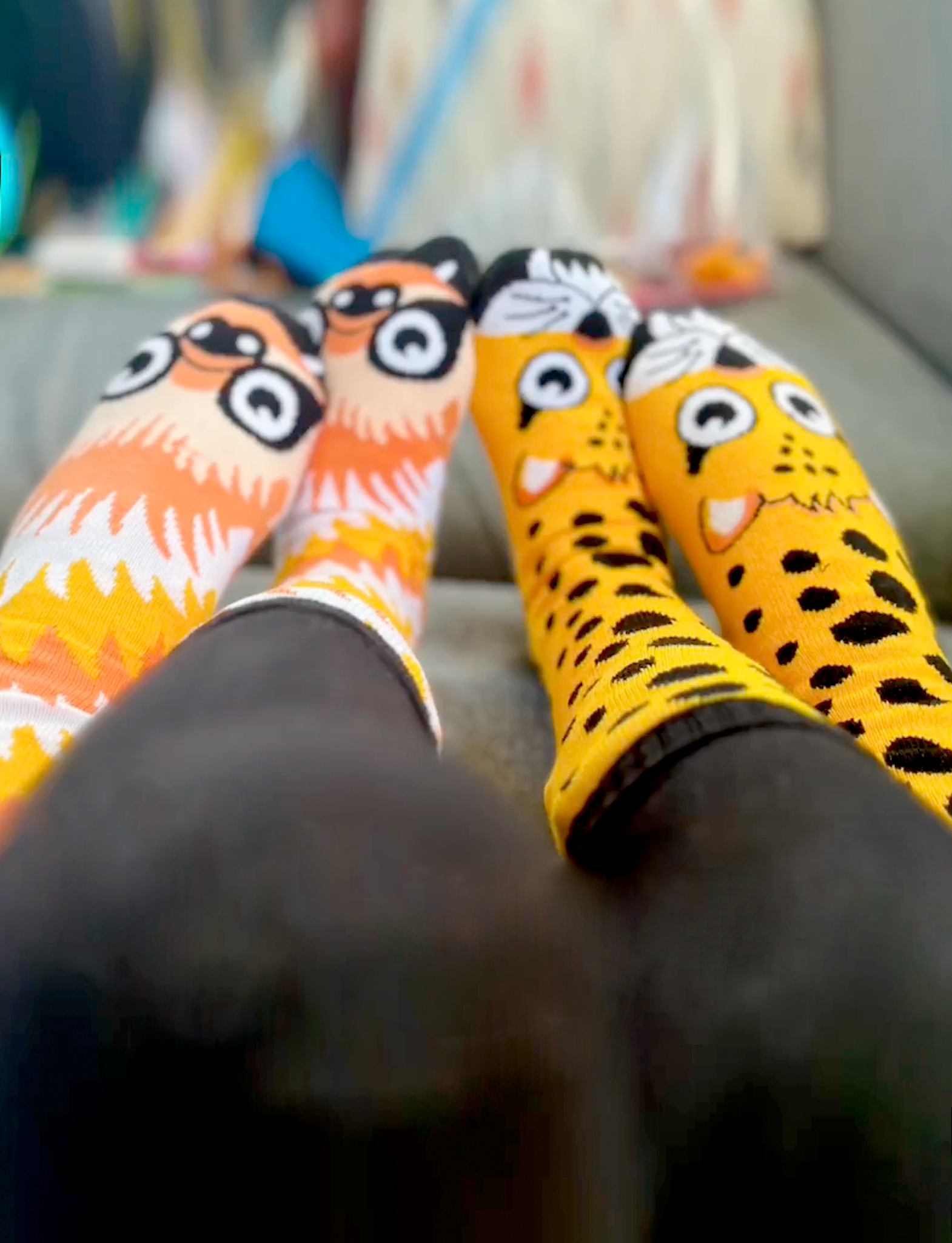 SLOTH & CHEETAH DAD OR MOM AND ME SOCK SET